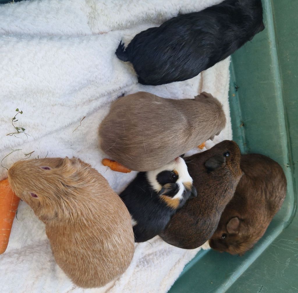 Sie haben sich für das bildschöne Schwarz Rot Agouti Kastrat entschieden. Ein ruhiger Kerl der dennoch seinen Job macht (grad heute wieder gesehen). Eine schöne Dame aus Dänemark die etwas scheu ist und das bunte Baby.